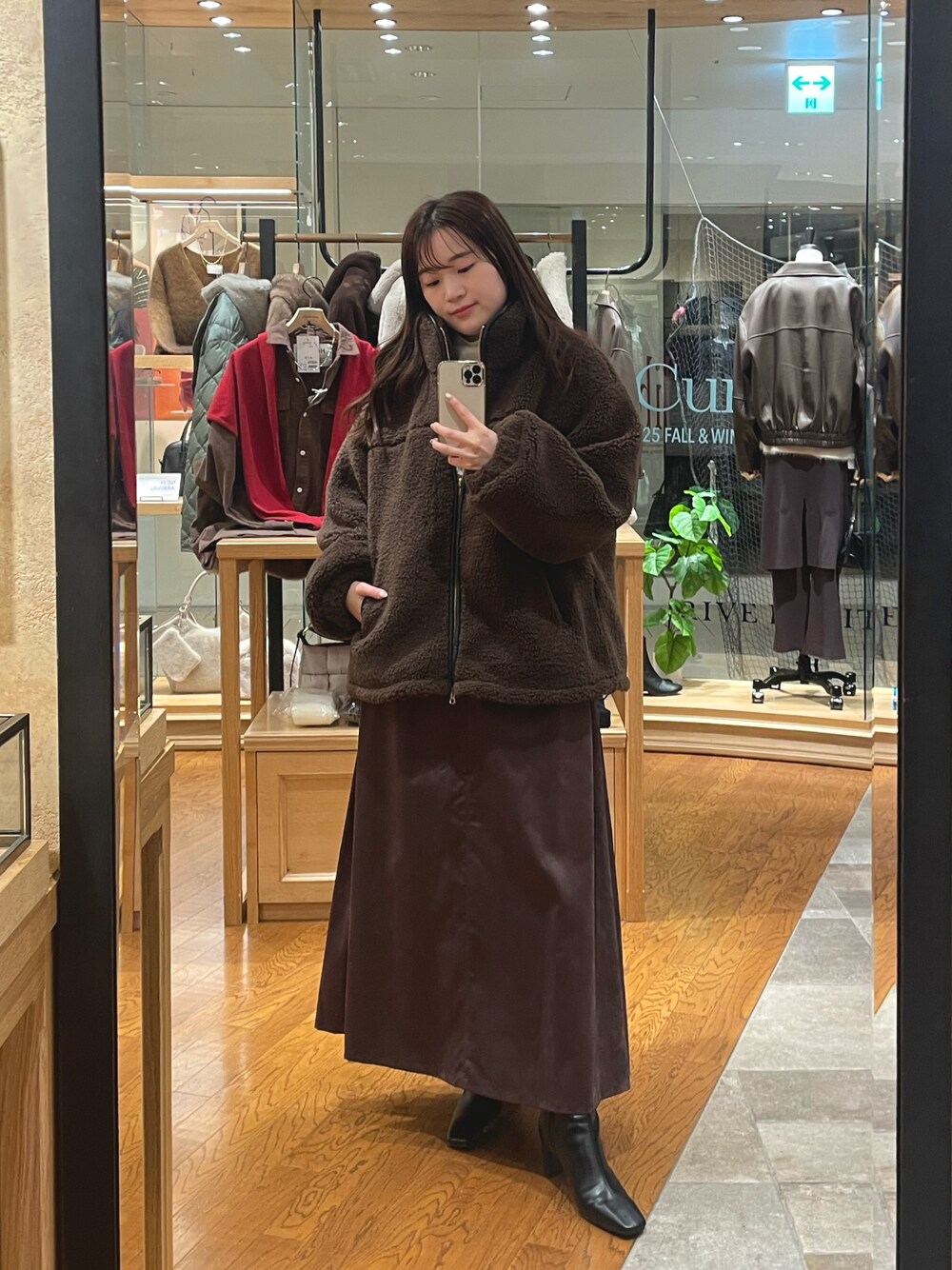RUNA(RIVE DROITE有楽町)のその他アウター「【リバイバル/暖かみのある素材感】テディボアZIPコート」を使ったコーディネート