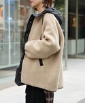 昨年も人気だったフードボアコートご今年も登場! ゆったりシルエットなので、中に厚手のニットもしっかり着込めます◎ ヒップもしっかりと隠れるので安心感もありつつ、バランスも取りやすいです! ベージュのカラーを着用しております。