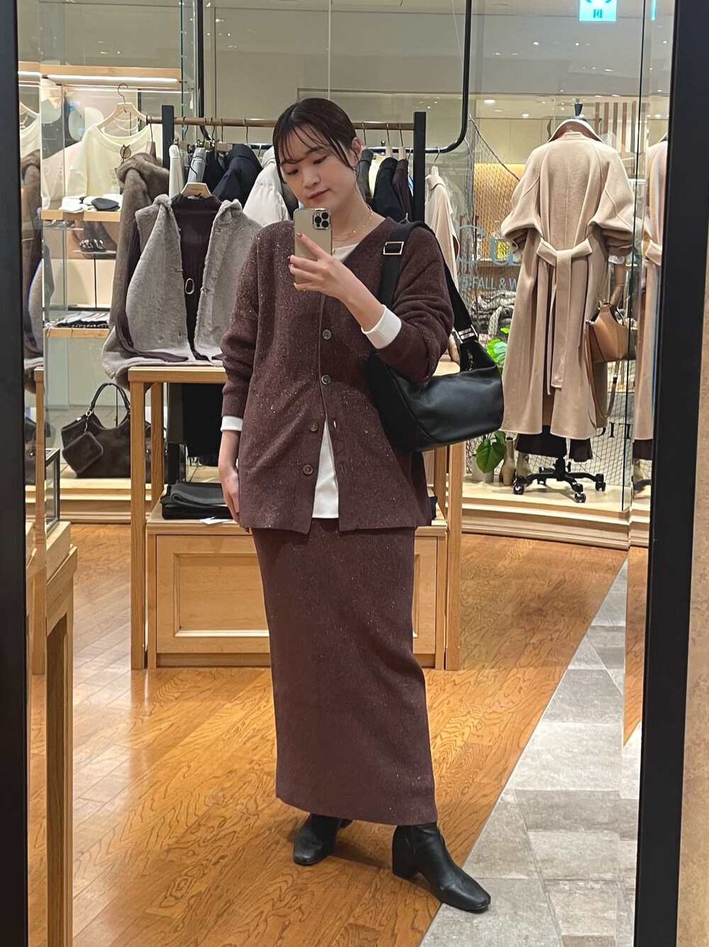 RUNA(RIVE DROITE有楽町)のスカート「【セットアップ対象】ラメモールニットタイトスカート」を使ったコーディネート