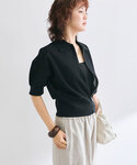 さこちゃん(RIVE DROITE 池袋東武)のパーカー「【抜け感】セミシアーZIPポロニット」を使ったコーディネート
