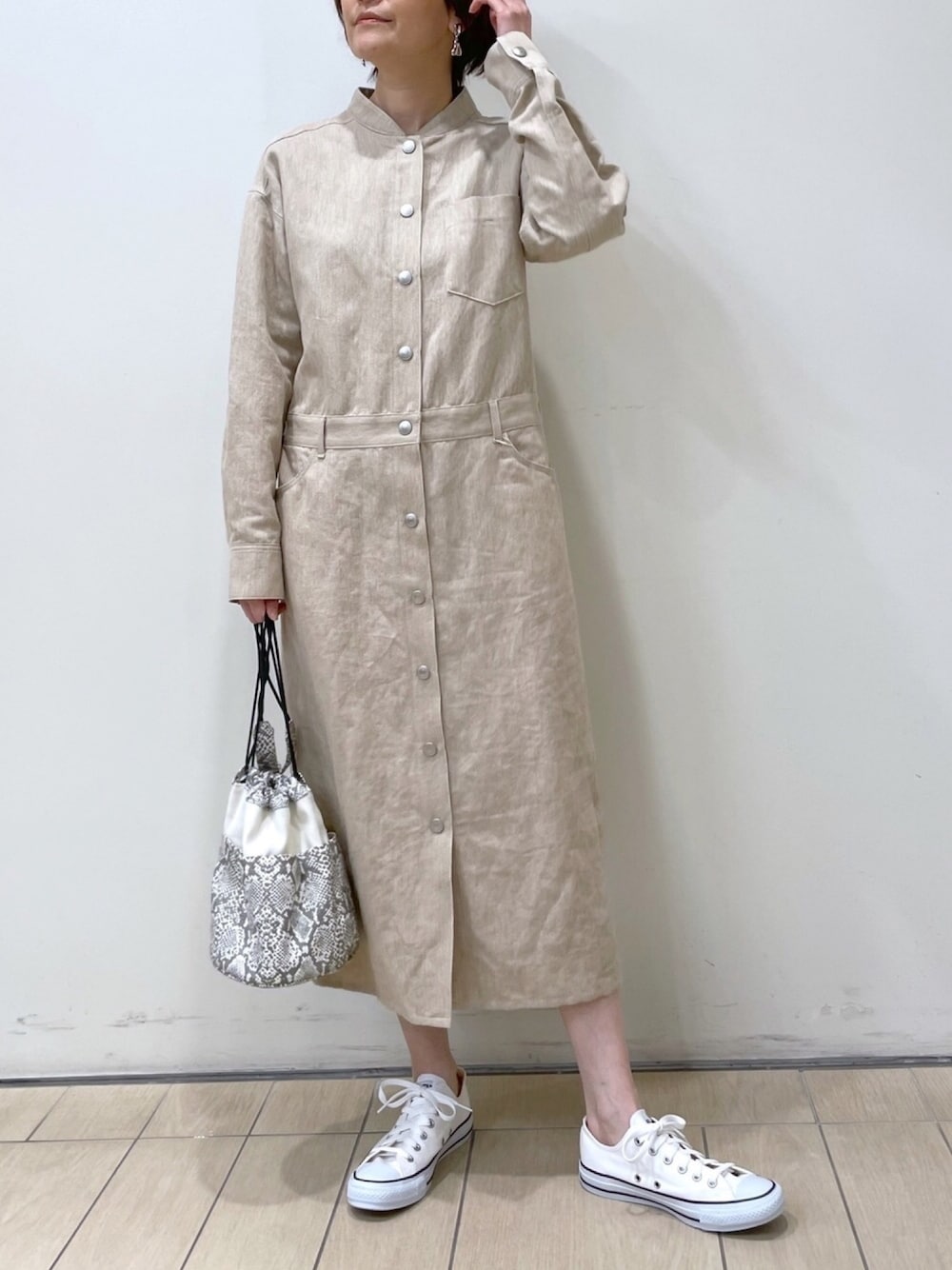 IKUKOのワンピース「【一枚で様になる】コットンリネントップデニムワンピース」を使ったコーディネート
