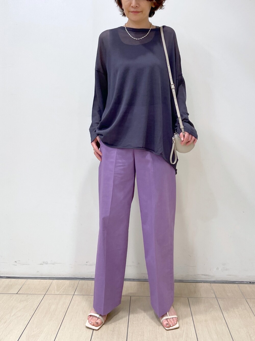 今年は、色ものが気になる。。。 パープル×チャコールで スタイリングしてみました