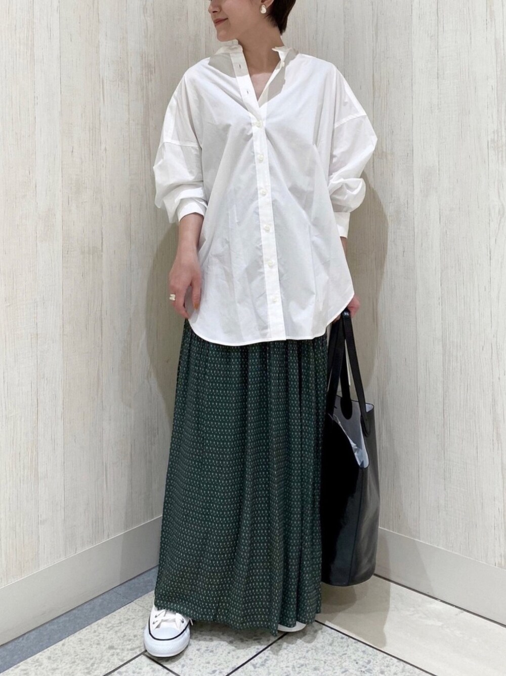 TOMO(RIVE DROITE 池袋東武)のシャツ/ブラウス「抜け感のある着こなし タイプライターオーバーロングシャツ (長袖)」を使ったコーディネート