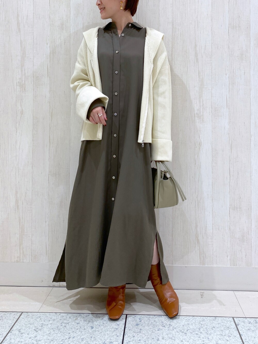 TOMO(RIVE DROITE 池袋東武)のカーディガン/ボレロ「トレンドライクな着こなしが叶う 片畦セーラージップカーディガン」を使ったコーディネート