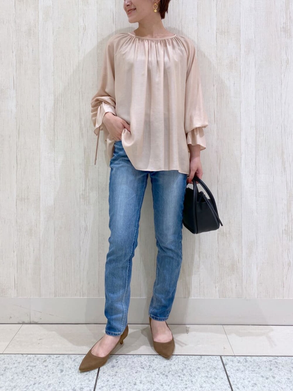 TOMO(RIVE DROITE 池袋東武)のシャツ/ブラウス「装いにフェミニンな表情をプラス ドレープシフォンフリルカフスブラウス」を使ったコーディネート