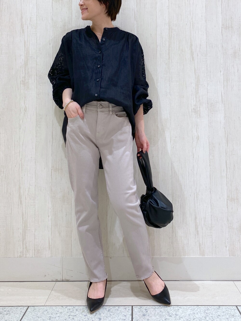 TOMO(RIVE DROITE 池袋東武)のシャツ/ブラウス「レースキリカエパフスリーブブラウス」を使ったコーディネート