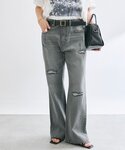 ・ブラウス 透け感のあるフェザージャガードを使用したブラウスです。1枚で着映えて、女性らしい印象で着用頂けます。少し透け感のあるデザインが抜け感を演出してくれます。 ・デニム 36サイズ着用 細部のディテールとシルエットでこだわり抜いたセミフレアデニムです。ゆるやかなフレアシルエットは脚長効果抜群です。