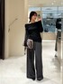オフショルトップスと、スウェットパンツを合わせて大人レディ+ラフさを合わせたスタイリングに。 トップスは、襟元のデザイン次第でオフショルやルーズなタートルネックのように気分でいろんなスタイリングが楽しめるアイテムです。 キレイめなスウェットパンツと合わせることで、決めすぎず抜け感のあるコーデにまとまります。 小物はファーアイテムで一気に秋らしく!◎