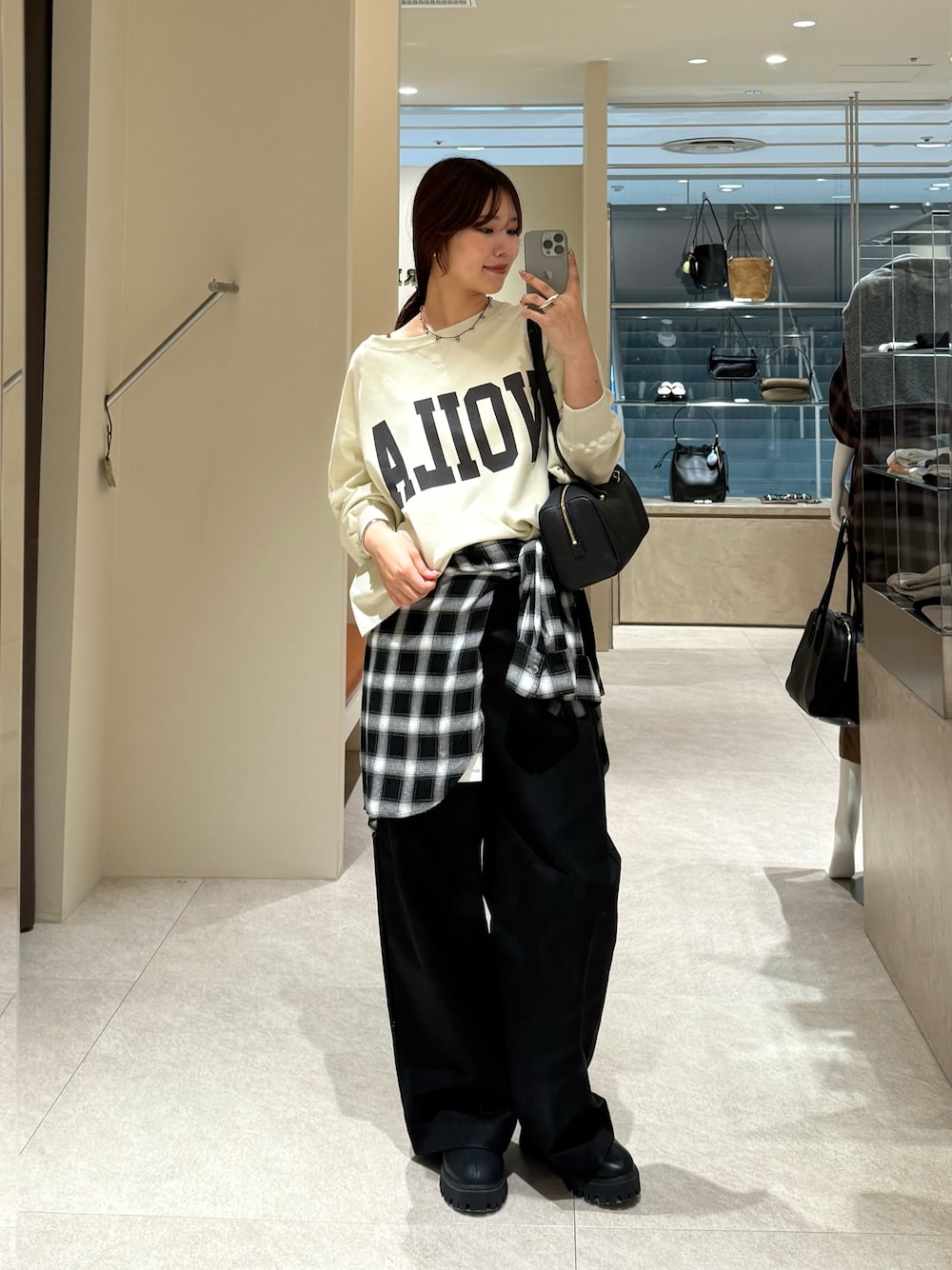 大人カジュアルなスタイリングに◎ ロゴスウェットとチノパン合わせで、ハンサムカジュアルなスタイリングに。 スウェットはロンTくらい薄手素材でとても着やすく、袖がドルマンにはなってますが薄いのでインナーにも使いやすいです。 チェックシャツを腰巻きすることで、コーデのアクセントとなり腰回りも隠してすっきり見えもするのでおすすめです!