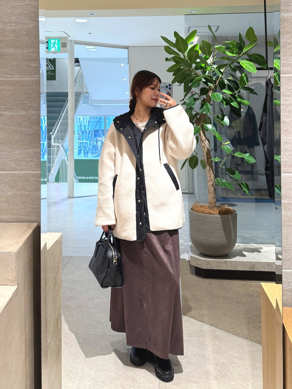 YUI(RIVE DROITE 名古屋PARCO)のその他アウター「【大人カジュアルに着れる】フードボアコート」を使ったコーディネート