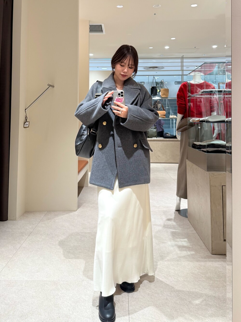 YUI(RIVE DROITE 名古屋PARCO)のピーコート「【リバイバル/新色追加】ラグランPコート」を使ったコーディネート