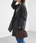 165cm 骨格ナチュラル 羽織るだけで着映えするウールコート。 グレーの36サイズを着用してます。 ミドル丈なので、ボトムを選びやすくどんなシーンでもお使いいただきやすいコートです。 肩パッドが入っていて、ハンサムな雰囲気に◎ とても軽くて、内側にポケットもあり使いやすいです。