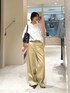 A•MONNのセットアップ着用しました! 羽織るだけで着映えするショート丈のトレンチ◎ 後ろや横から見たシルエットもとても綺麗です! パンツは38サイズを着用。 ゆとりのあるシルエットで、ルーズにお召しいただけます。