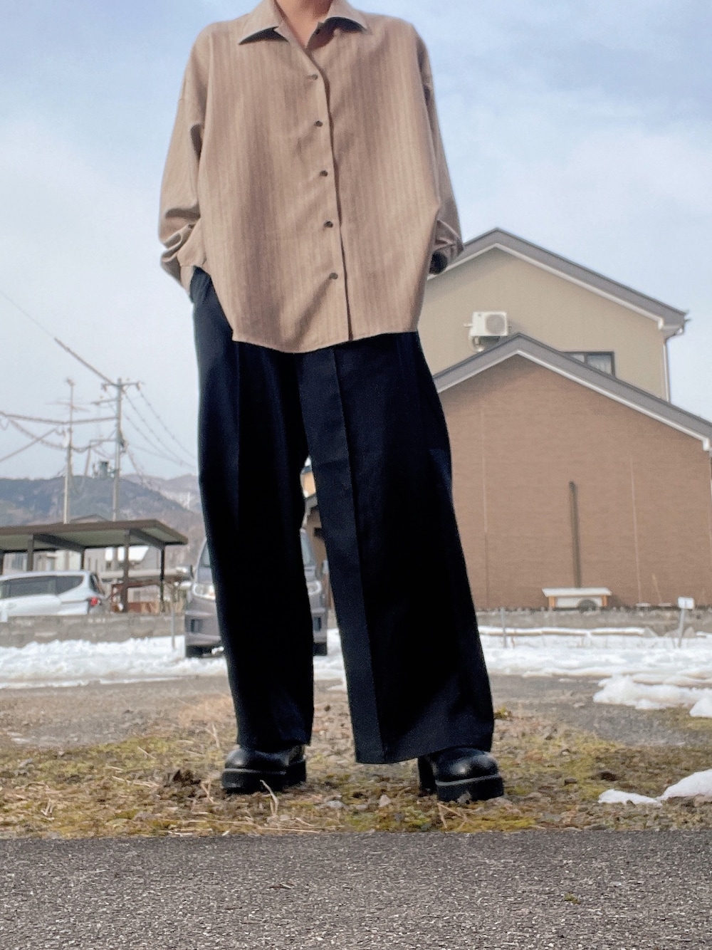 れんぴき〔相互〕のスラックス「Fade color flare slacks/フェードカラーフレアスラックス」を使ったコーディネート