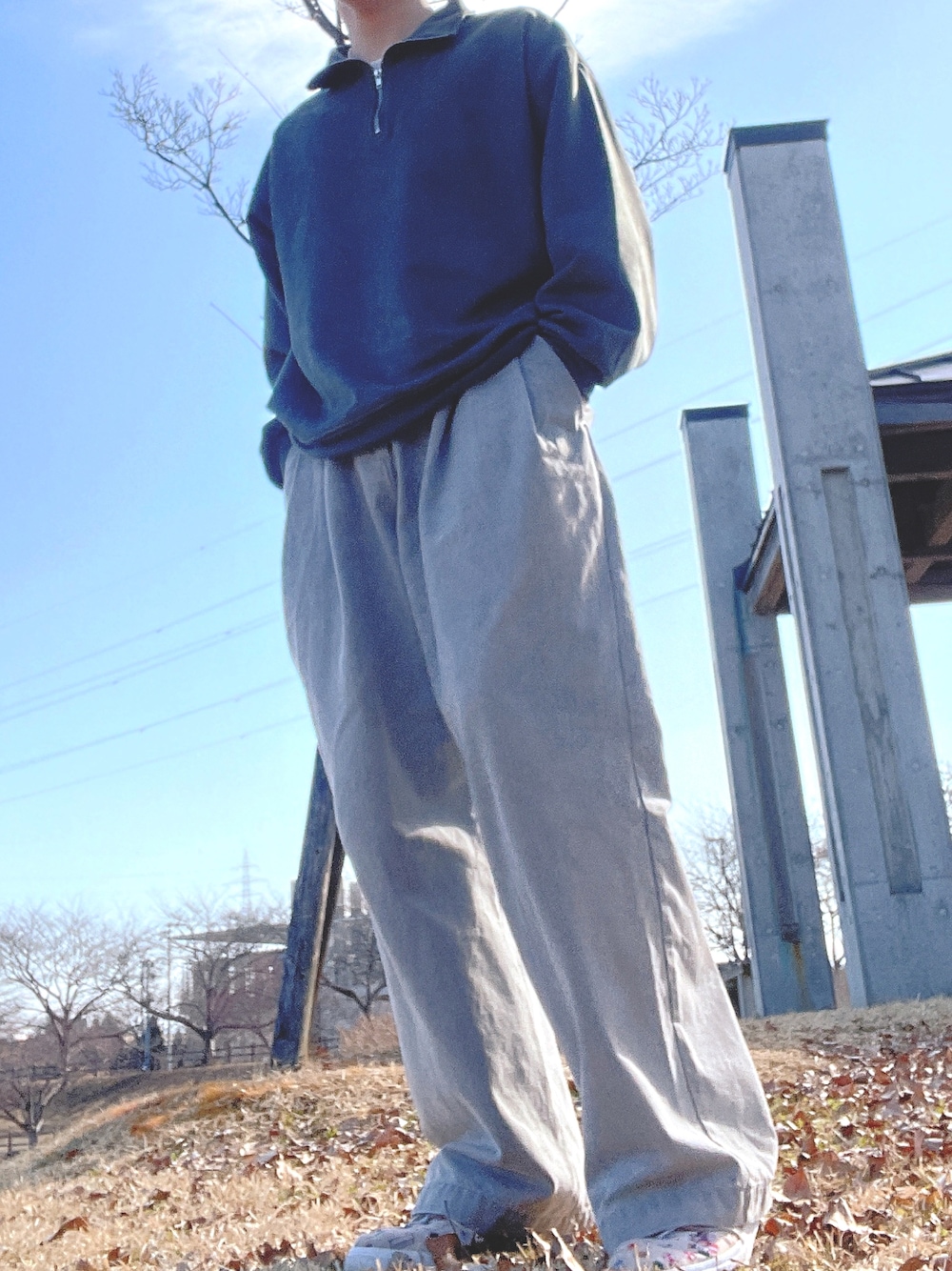 れんぴき〔相互〕のスウェット「【CLEL】Half Zip Design Pullover/ハーフジップデザインプルオーバー」を使ったコーディネート