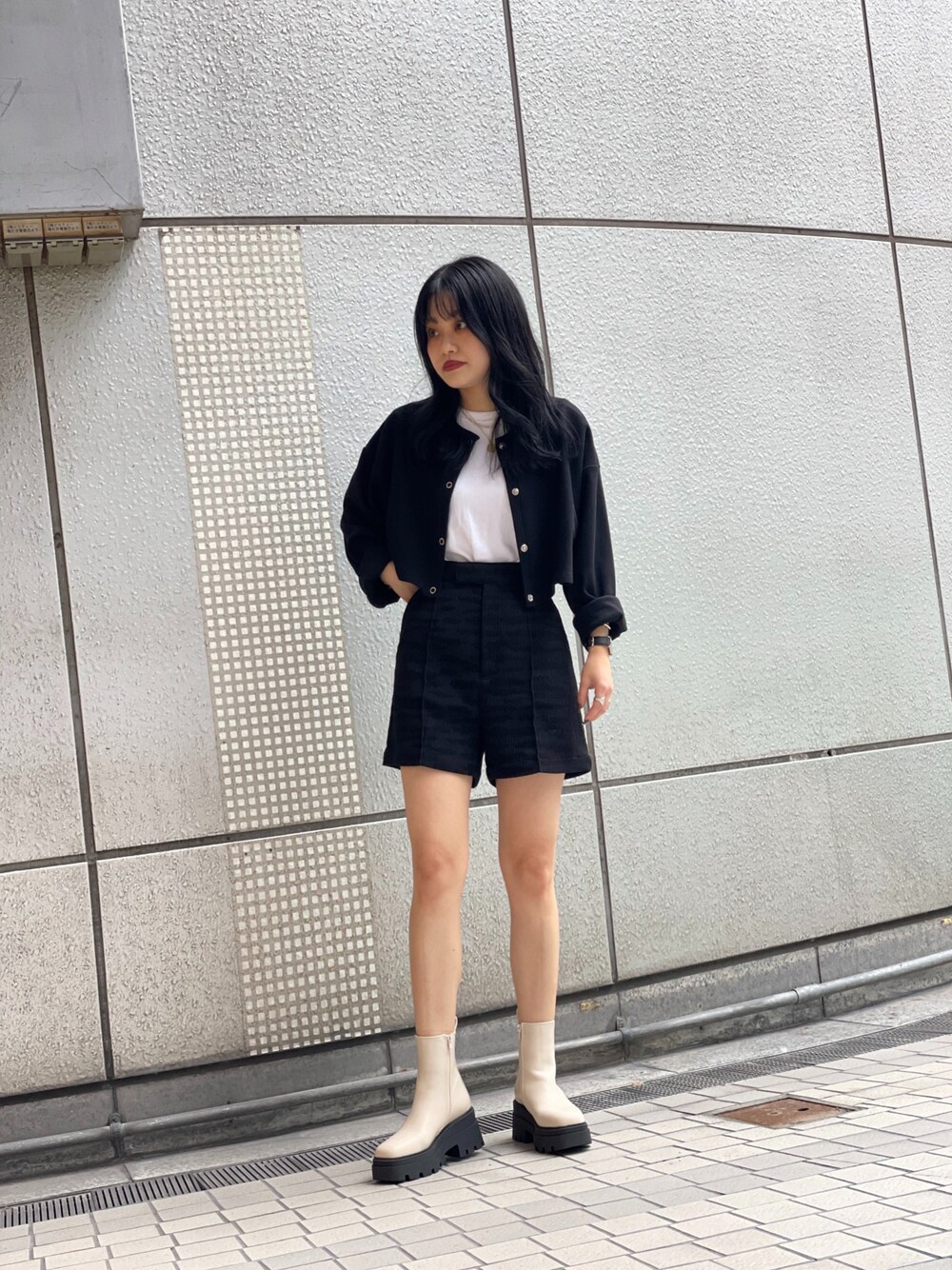 R&E_REZOY本部staffのブーツ「【R&E】トラックソールスクエアサイドゴアブーツ」を使ったコーディネート