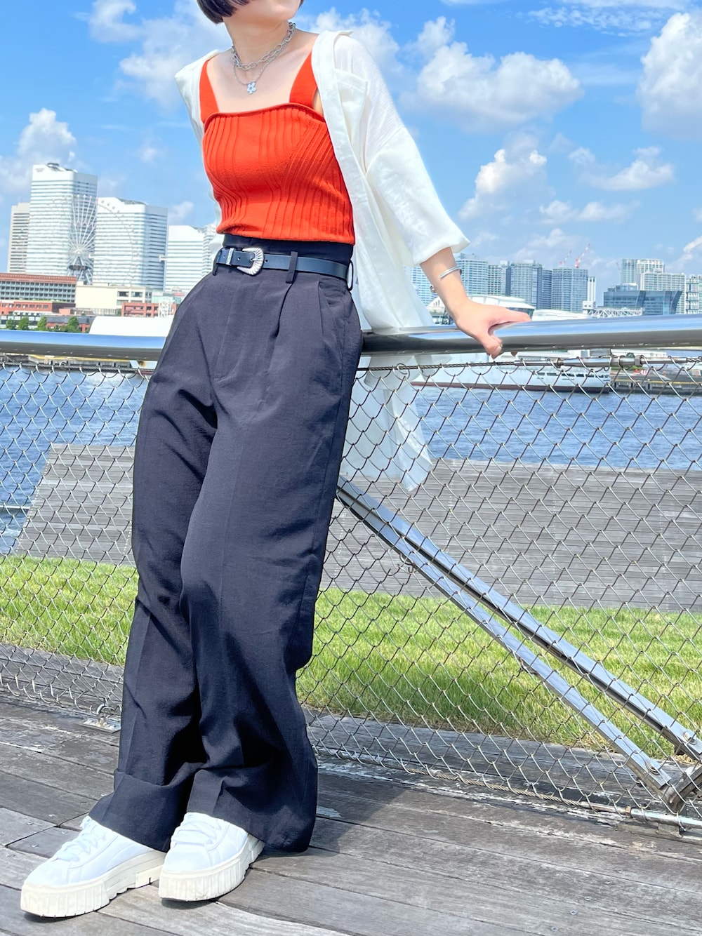 re@のその他パンツ「リネンライクハイウエストワイドパンツ」を使ったコーディネート