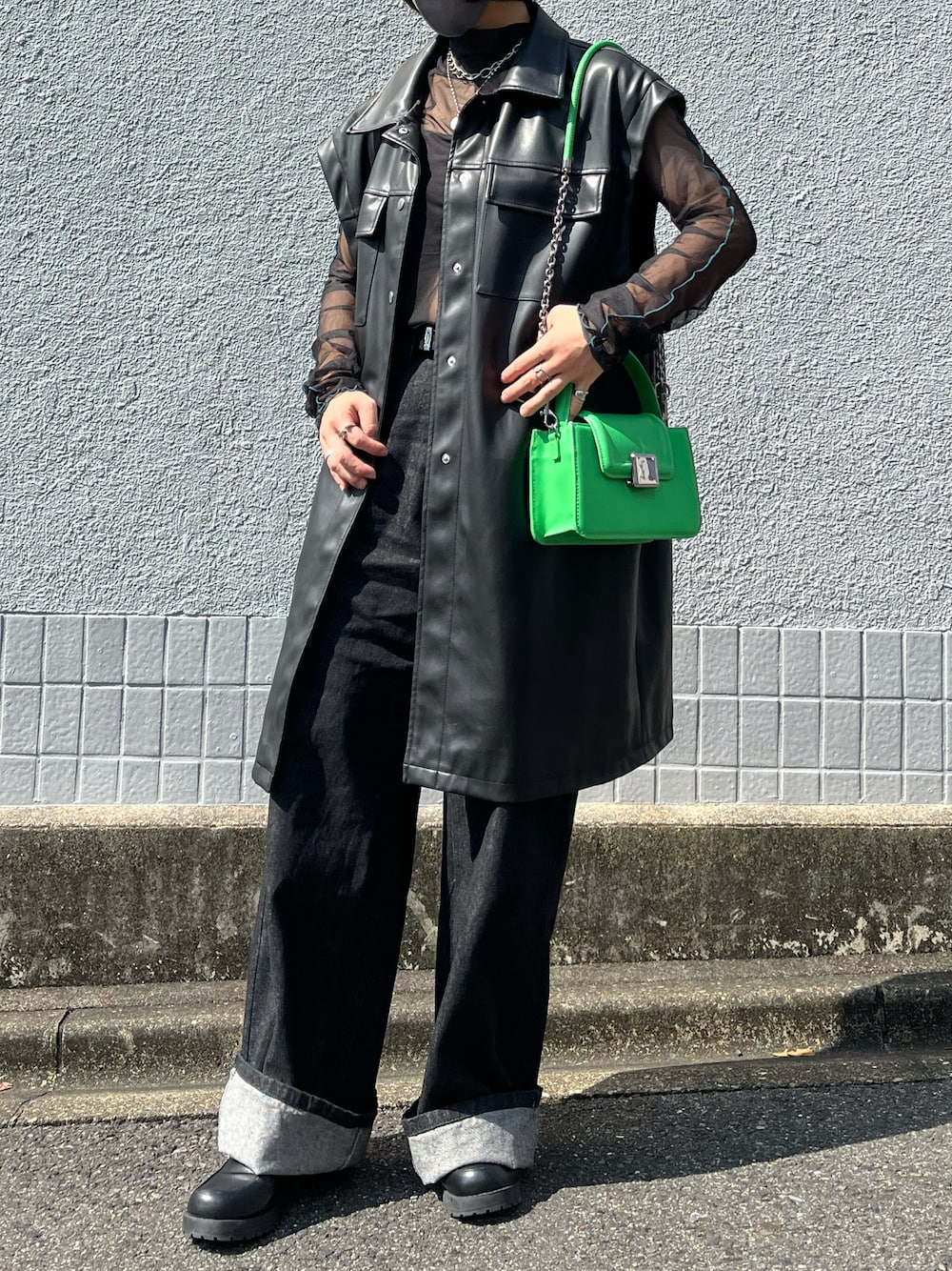 ご覧いただきありがとうございます🙇♀️ オールブラックコーデにしました! シアーギャザータートルのブルーのステッチが可愛すぎる🤦♀️❤️🔥 PAGEBOYしか勝たん✊💖✨
