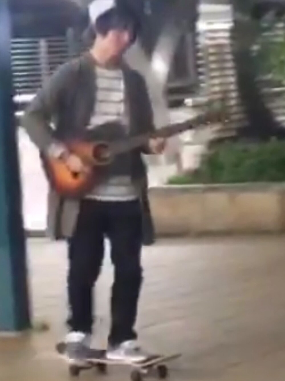 路上ライブのあと。 思いついてスケボーに乗りながらギター弾いてきました(o^^o) NIKE SBがちゃんとスケシューしてます。 最近スケボーハマってます。 画像粗めですみません。