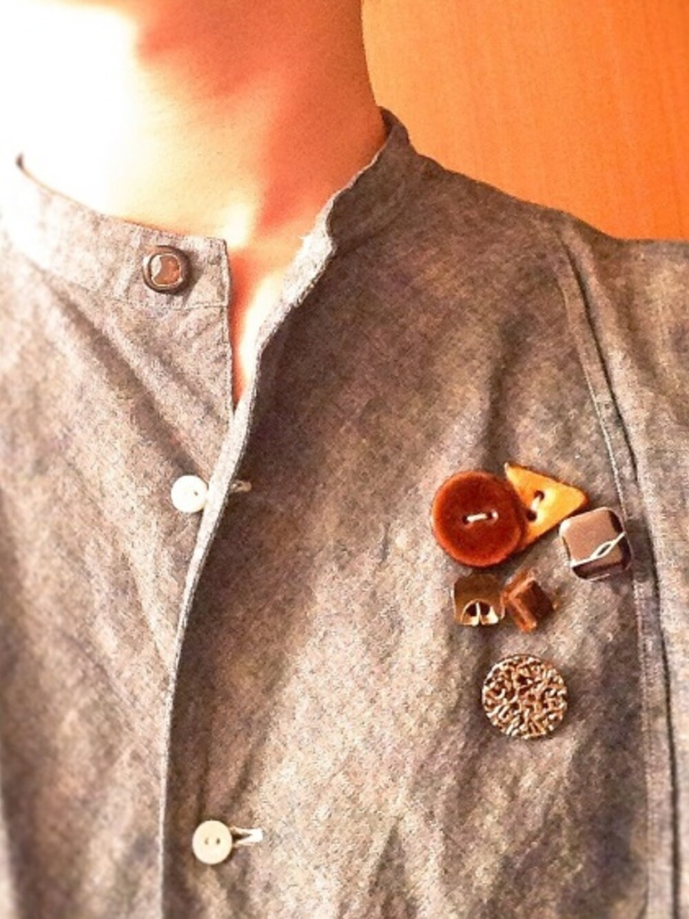 首もとのボタンが一番最初に買ったボタンです^ ^ なんだか最近ボタン付けがめっきり自分ブームでして😶笑 今日は、このシャツに付け直しました!