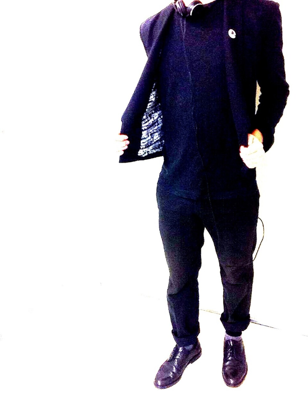 斎藤さんだぞポーズでジャケットの裏地が見え隠れ。 連日黒コーデで失礼します(^-^) 胸の鳥バッヂは最初から付いてました。MOZUかな、まぁこわいんで考えるのはやめときます!