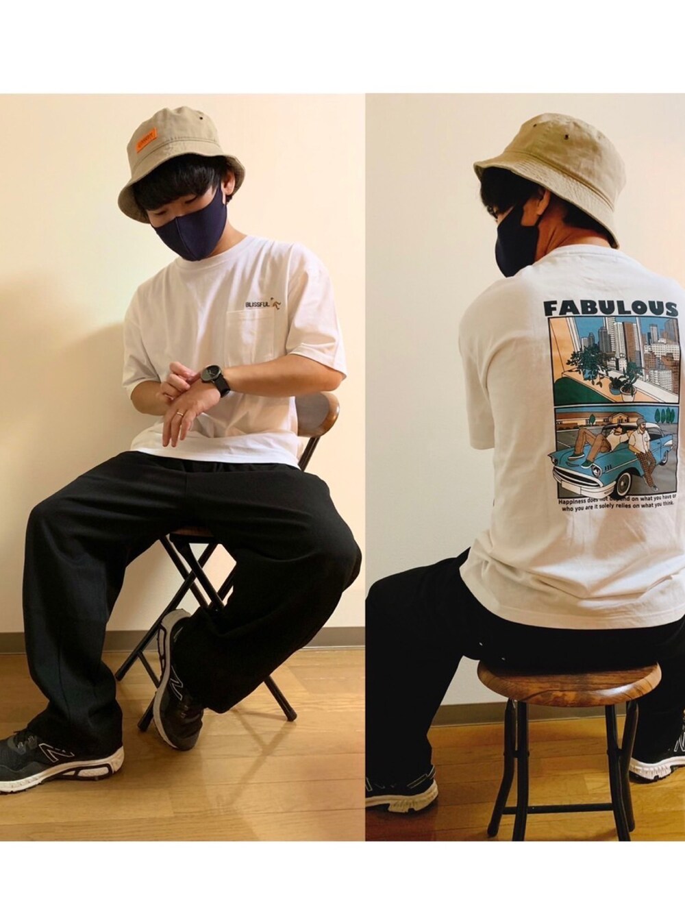 Nao のハット「ウォッシュド バケットハット / キャンバス / デニム / USED加工」を使ったコーディネート