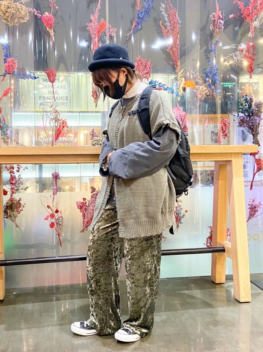 初投稿です🌷 WHO'S WHO galleryのダメージマルチウェイニットは袖を外すとベストとして使えるので着回ししやすくてお気に入りです🙆♀️ 最近はマスクがデフォなので顔が隠れないツバの短い帽子を合わせるのがオススメ👌 今日かぶっている帽子もワッチ感覚で被れて◎