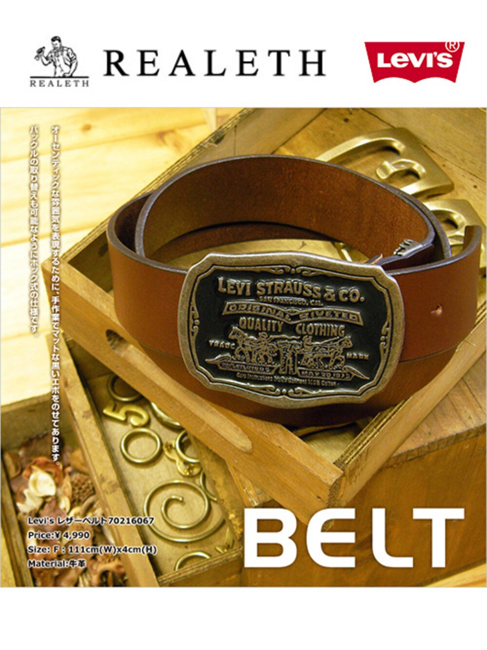 ◆皆様の生活を豊かにしたいと思っているリアレスです。 本日、2017年6月19日(日)は 「 #ボクシングの日 」らしいです。 ボクシングといえば、チャンピオンベルト! 戦いを勝ち抜いた『 勝者 』だけが 身につける事の出来る 『 栄光 の 証 』 それが『 チャンピオンベルト! 』 そんな格好いい ベルト身につけたいと 思っている方いませんか? リアレスで扱っているベルトも 日本の職人さんが 丹精込めて『 職人技 』と 『 使う人への想い 』『 こだわり 』を力にして 世界に一つだけの 『 あなた 』だけへ『 贈る 』 格好いい ベルト を作っています! ギフトとしても喜ばれる、 『 MADE IN JAPAN 』の 本革ベルト リアレス には あります! ------------------* ◆商品説明 バックルには 1886年に【 #品質保証書 】として デニムに付けられた 伝統的な【 レザーパッチ 】のデザインを使用。 オーセンティックな雰囲気を表現するため、 【 日本 】の【 職人 】が 手作業でマットな黒いエポをのせてある、 【 MADE IN JAPAN 】な一品です。 ホック式で、 バックルの取り替えも可能に。 -------------------------* ◆サイズ 素材:牛革 バックル:トップバックル ホール数:5穴 ベルト長さ:約111.0cm ベルト幅:約4.0cm 最大ウエスト:約100.0cm 最小ウエスト:約90.0cm バックル高さ:約9.0cm バックル幅:約6.5cm -------------------------* ◆カラー ブラウン ホワイト -------------------------* ◆もっと詳しくみたい方は *購入ページはコチラ。 http://item.rakuten.co.jp/realeth/lv70216067/ *公式HPからも商品一覧が見れるようになりました! http://item.rakuten.co.jp/realeth/c/0000000244/ -------------------------*