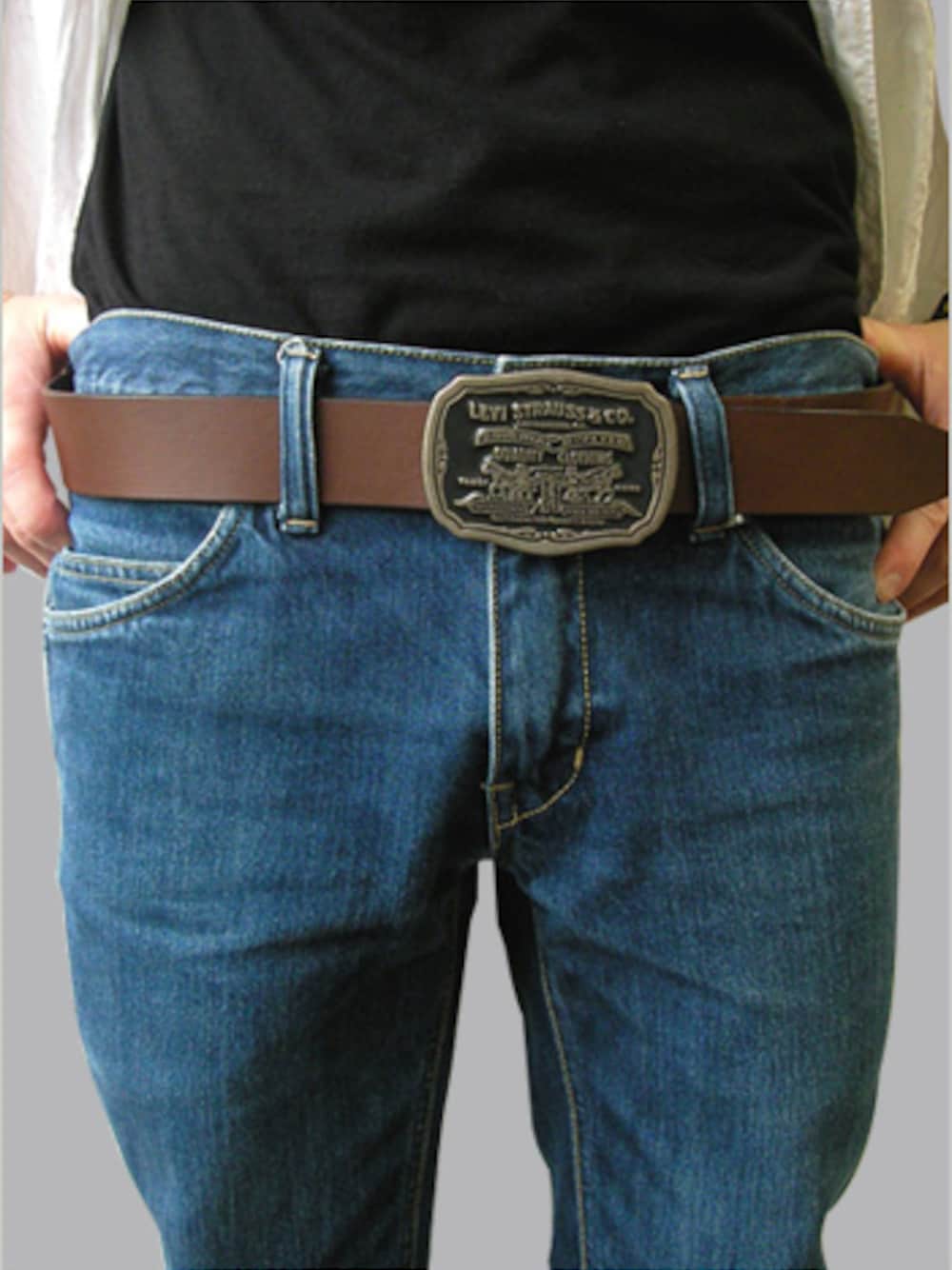 バックルには、 1886年に品質保証書としてデニムに付けられた レザーパッチのデザインを使用しています! オーセンティックな雰囲気を表現するため、 手作業でマットな黒いエポをのせてあります。 http://item.rakuten.co.jp/realeth/lv70216067/ *ご購入お考えの方はこちら↑(「・ω・)「ペタ
