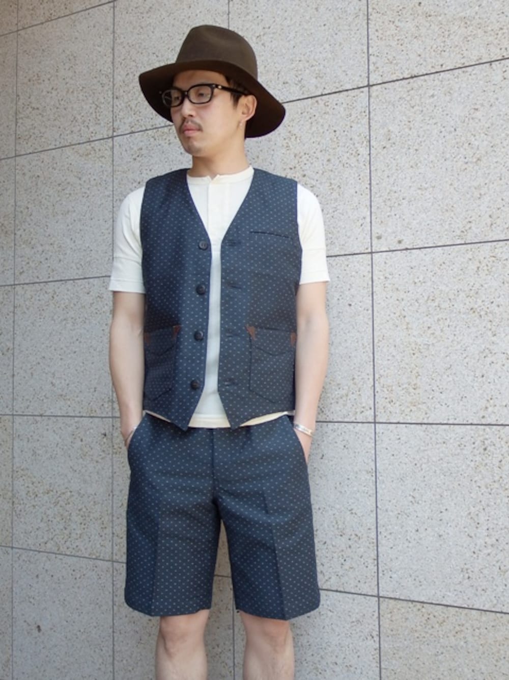 RealjamSTAFFのベスト「CALEE DOT PRINT ENGINEER VEST」を使ったコーディネート