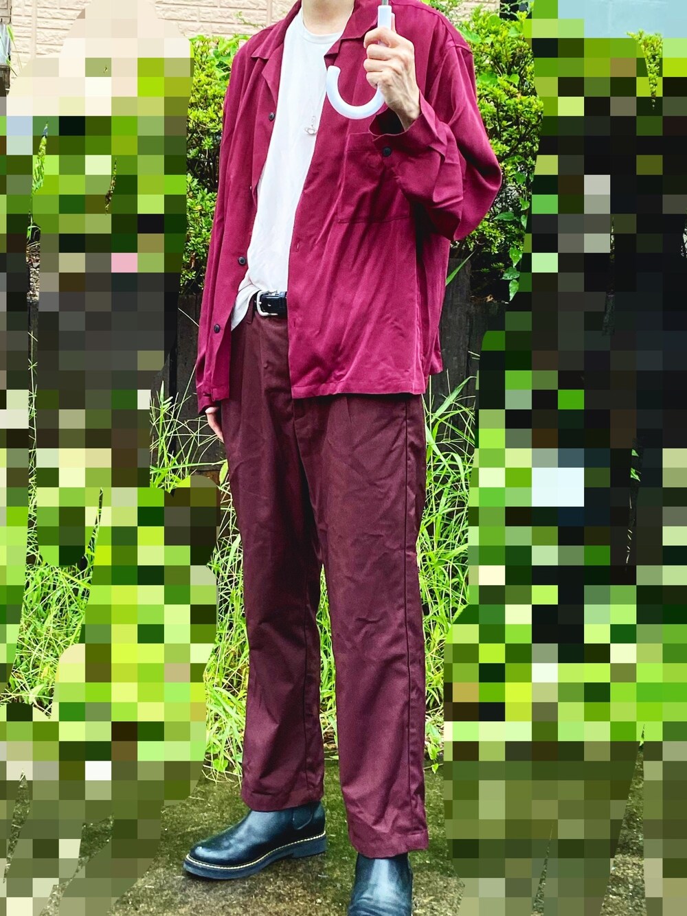 見ていだだけると幸いです。 今日は雨なので暗い写真が続きますね。早く晴れて欲しいーーーーーーー!。光は重要←ここ、ここ、。今回はワインレッドを使ってコーディネートしてみました。ボトムスはワイドパンツなので、ワイドパンツならではの良さが出ますよね。