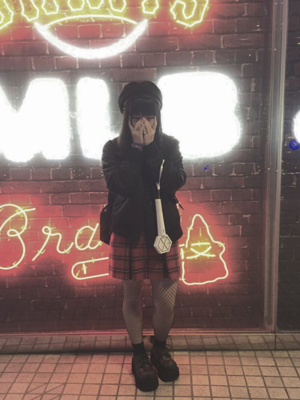 今日もEXOのコンサート行ってきました〜 網タイツはじめて履いた!最近履いてる人多い スカートも黒にしてオールブラックにしようと思ったけどこのスカート可愛かったから変えました✌️ 冬だしオールブラックコーデしたいなー