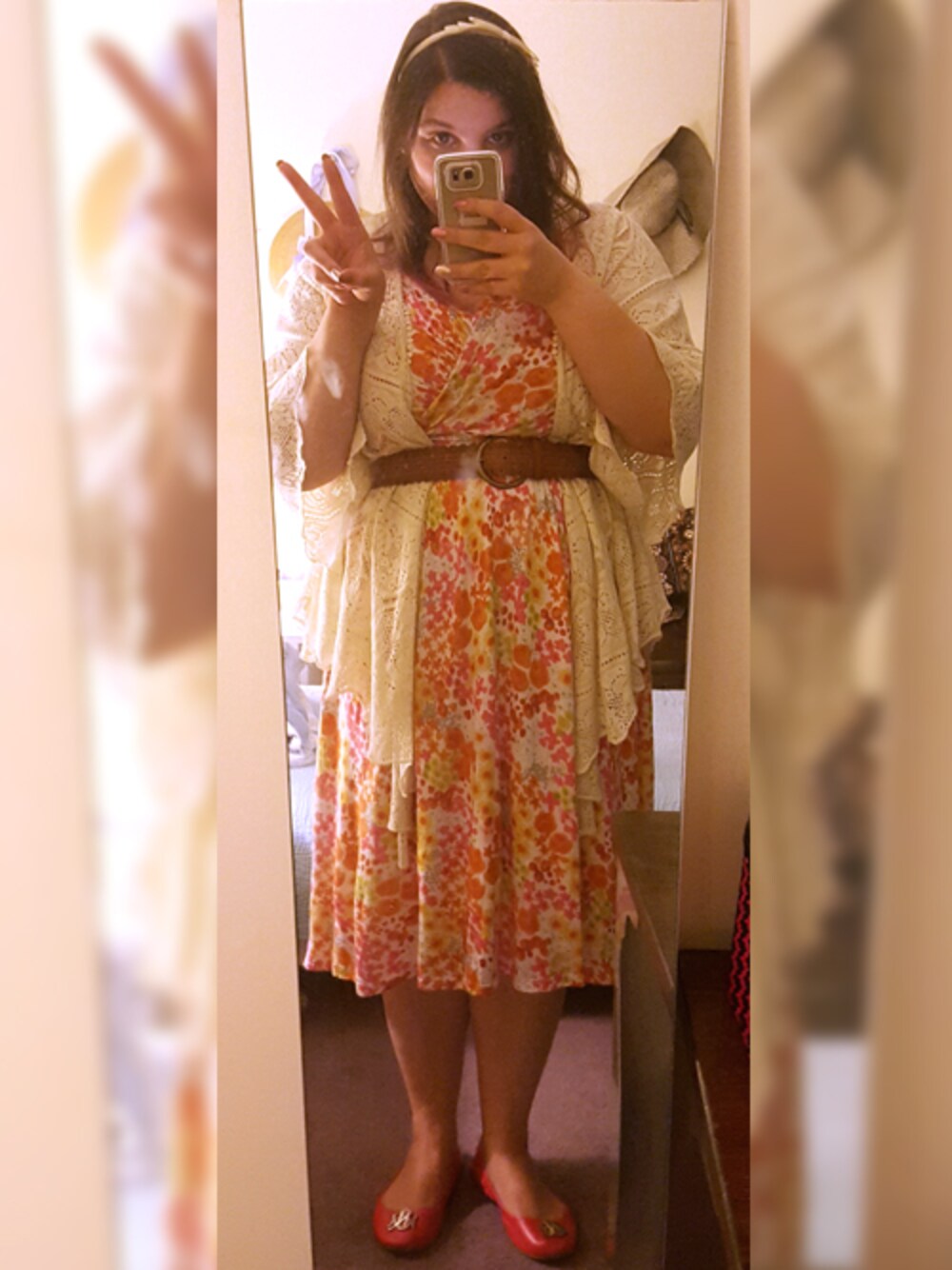 花柄のワンピースとレースのカーディガンで女子力アップ↑↑♡
