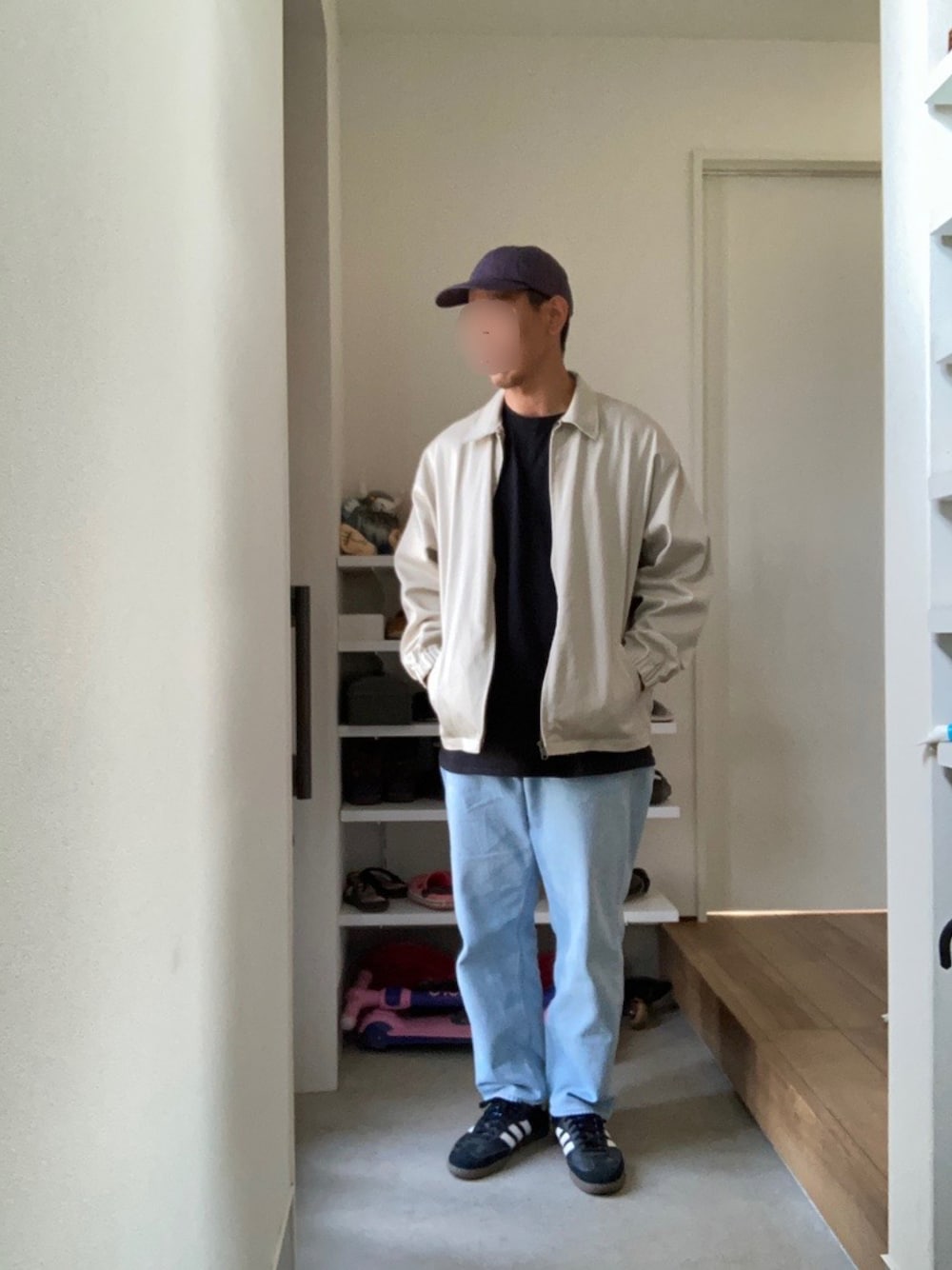 薄手のジャケットを シャツ感覚で羽織る 気候的に今しか無い⁈ と慌てて着ました