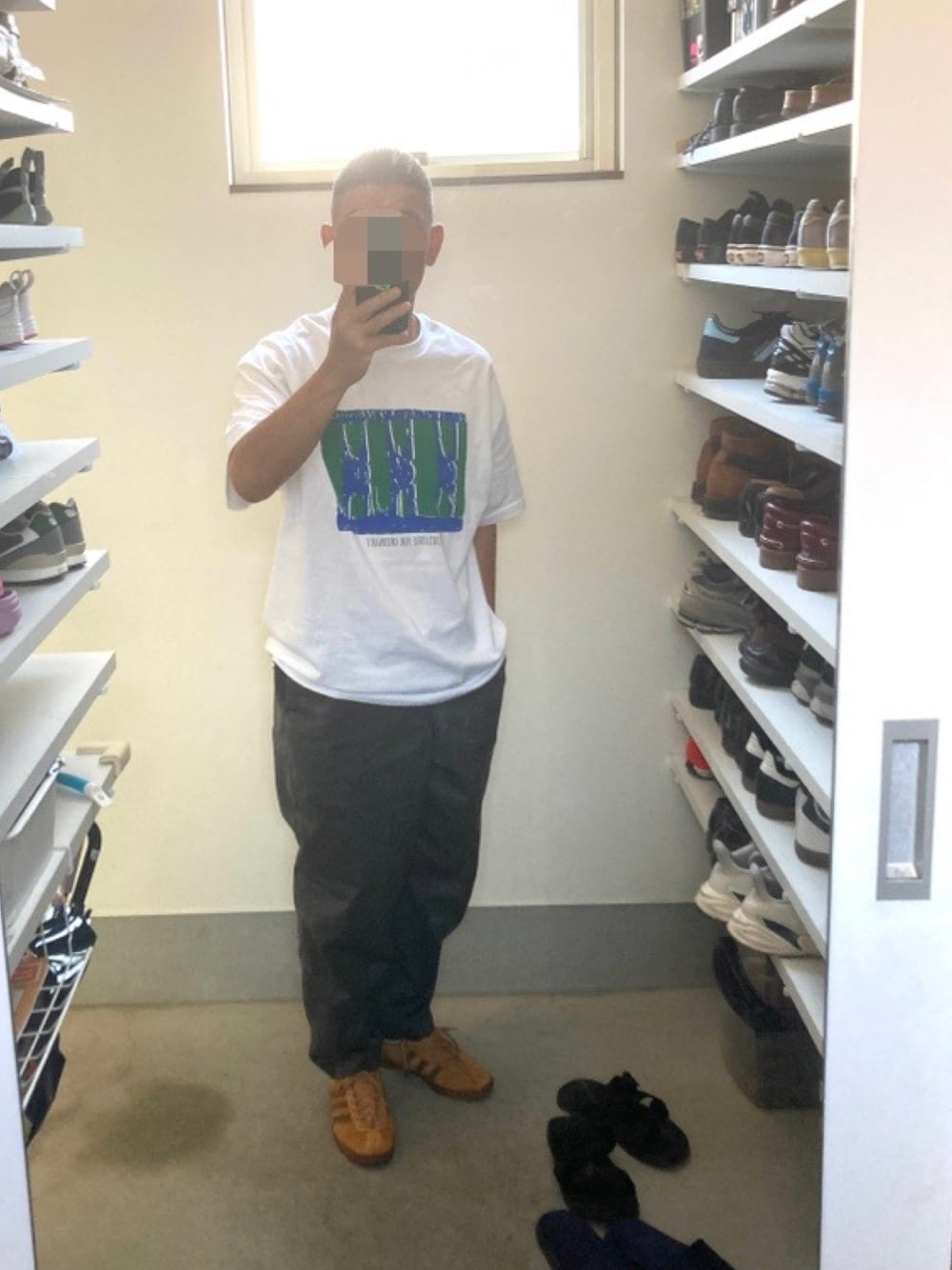 夏が来たらTシャツとショートパンツばっかりになるから、Tシャツと長ズボン。 それにアディダスのレトロスニーカー。