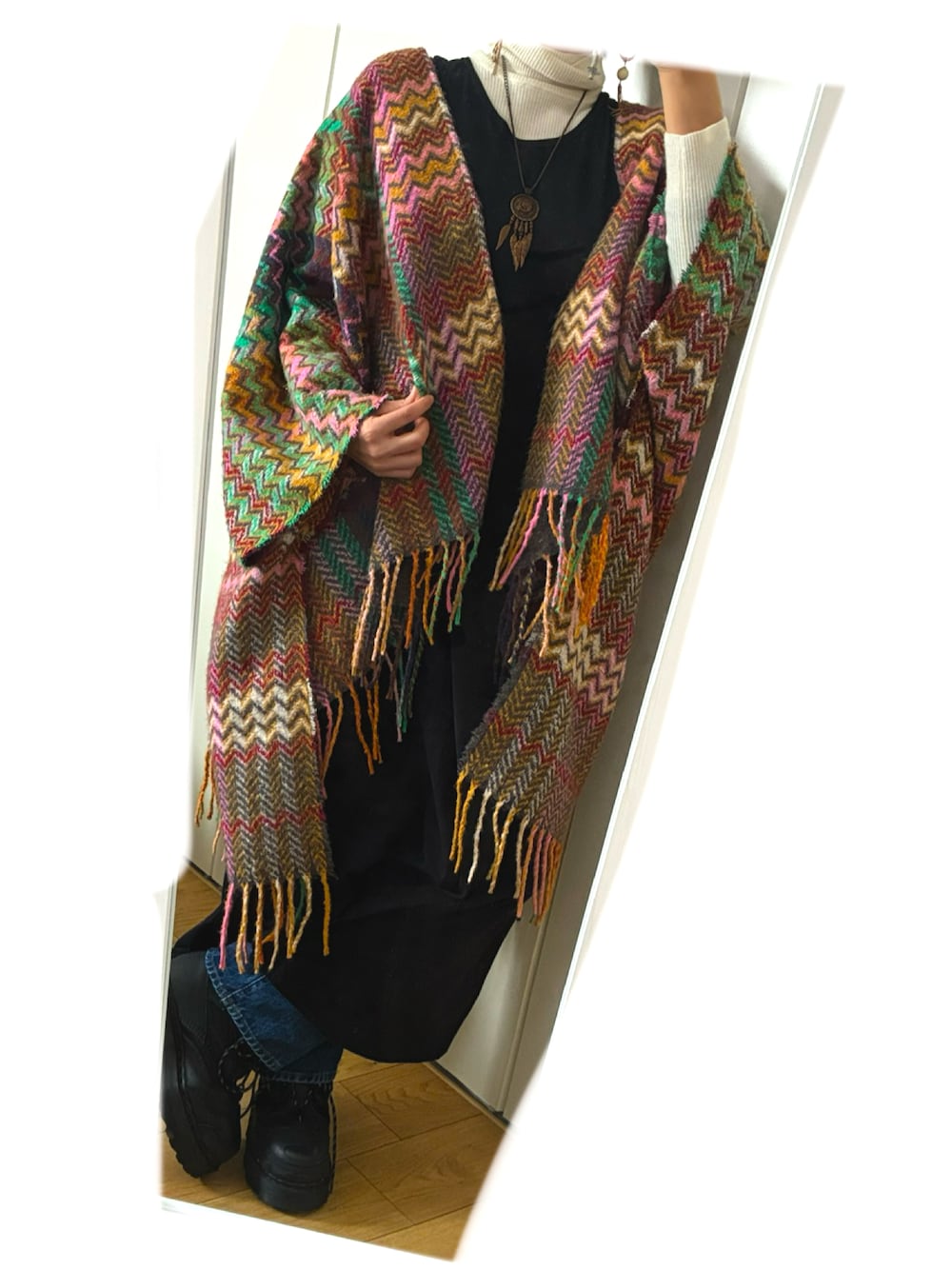 REのポンチョ「2wayデザインポンチョ」を使ったコーディネート