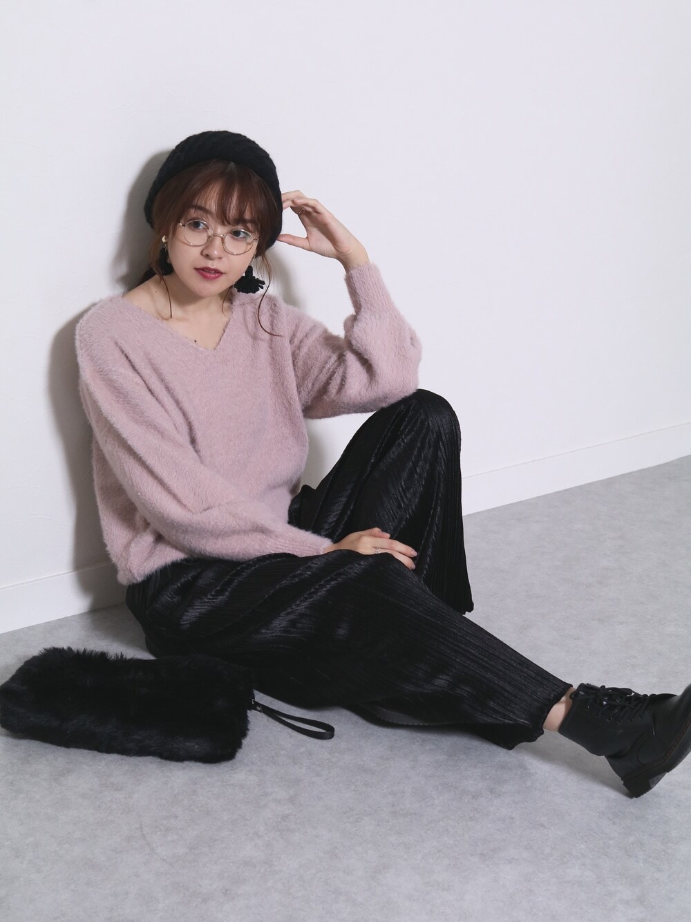 recastaff(reca)のその他パンツ「ベロアプリーツワイドパンツ」を使ったコーディネート