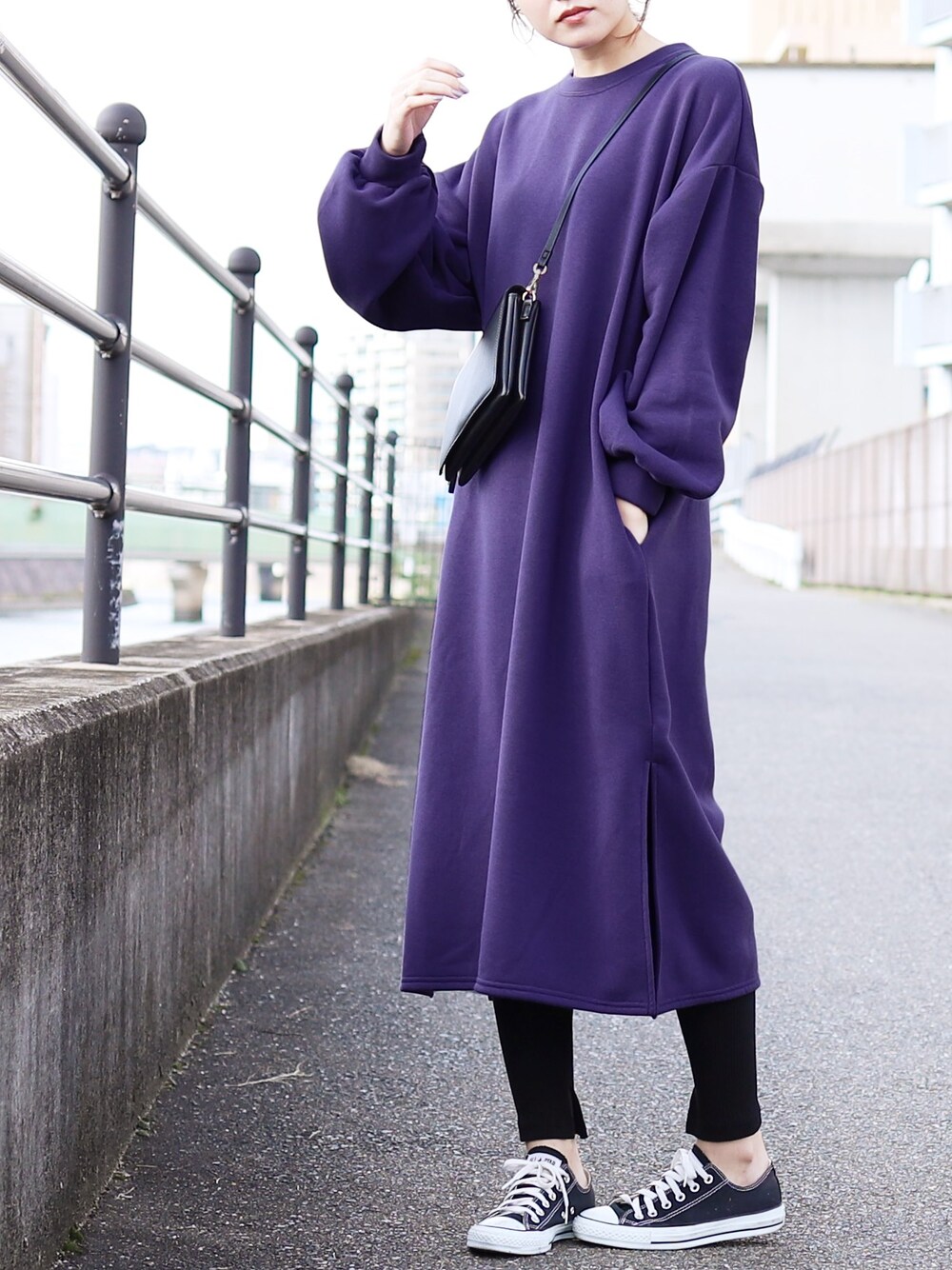 大人気裏起毛ビックシルエットワンピース パープル再入荷してます!!