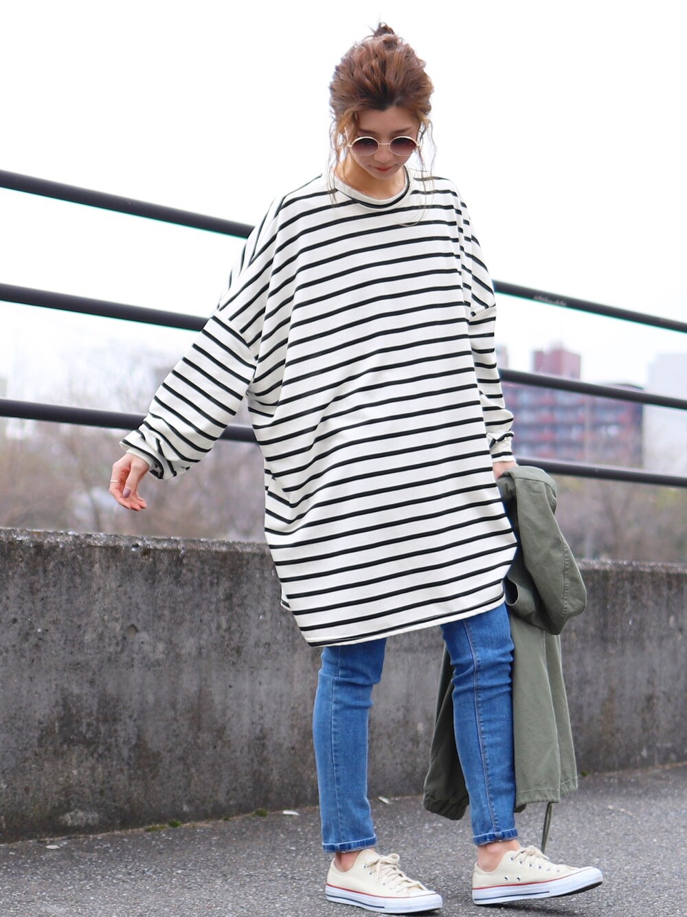 recastaff(reca)のワンピース「ビッグシルエットボーダーカットソー」を使ったコーディネート