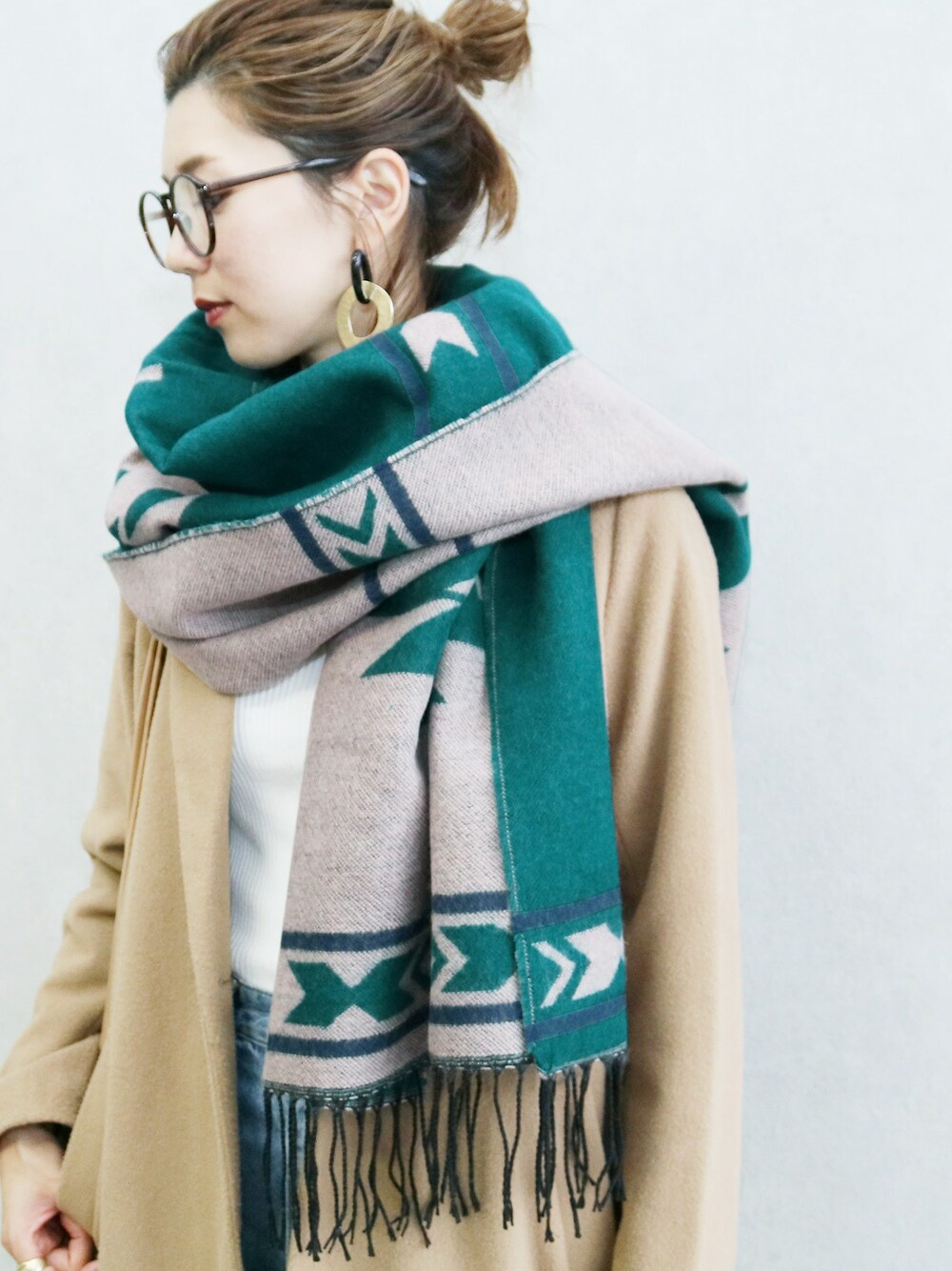 recastaff(reca)のストール/ショール「オルテガ柄大判リバーシブルストール」を使ったコーディネート