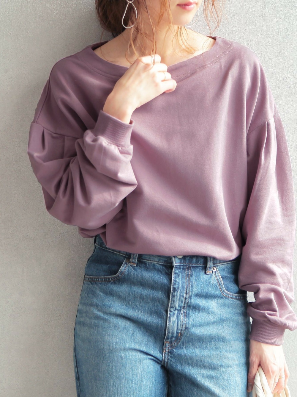 recastaff(reca)のスウェット「ボートネック ボリュームスウェットカットソー」を使ったコーディネート