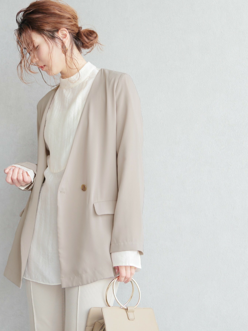 recastaff(reca)のノーカラージャケット「ジョーゼット ノーカラージャケット」を使ったコーディネート
