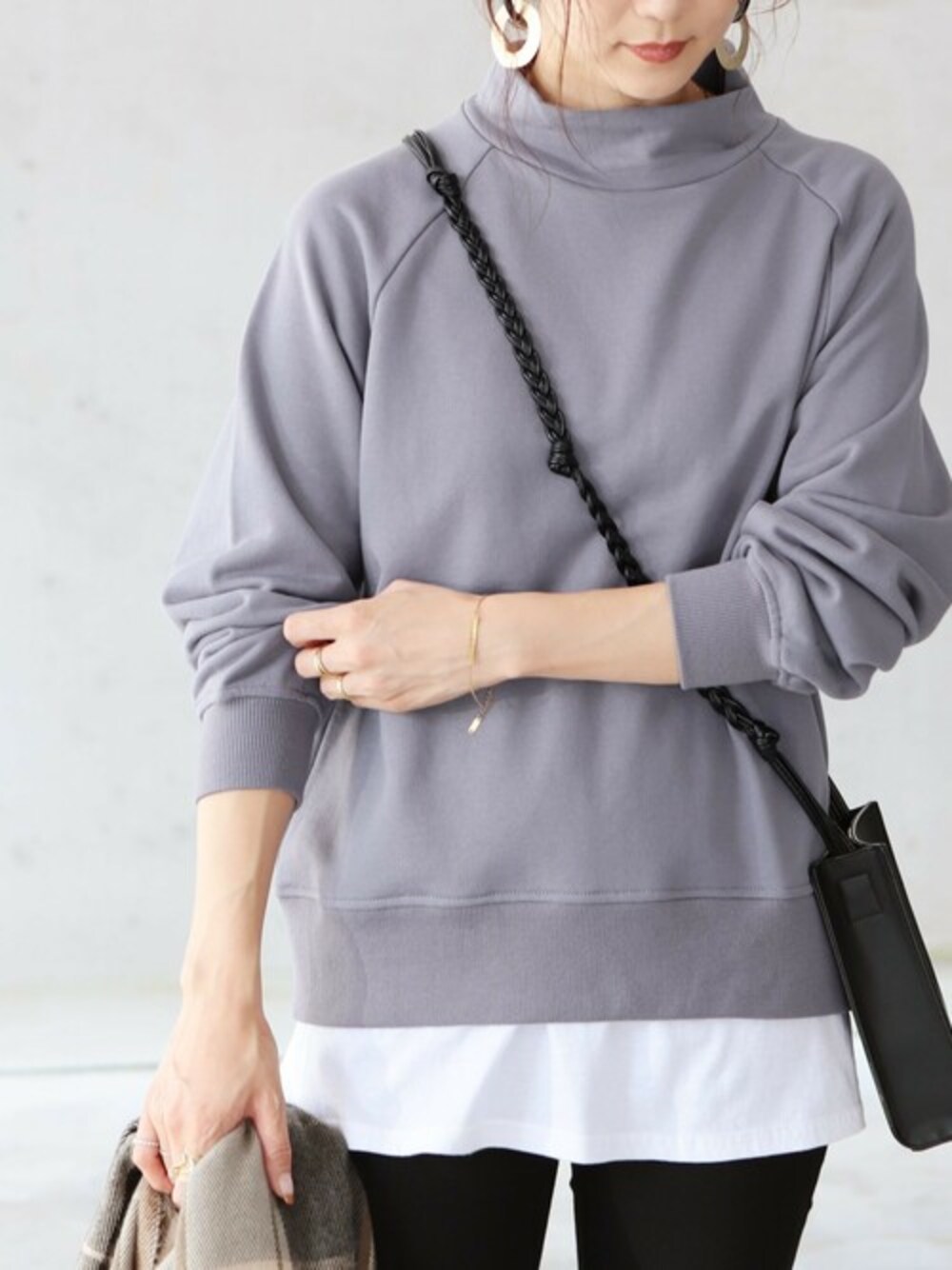□ pick up □ モックネックになってるタイプなので冷たい風も防げます♪ くすみカラーで展開中です♡ ‘‘モックネックスウェット‘‘ ¥2,970-