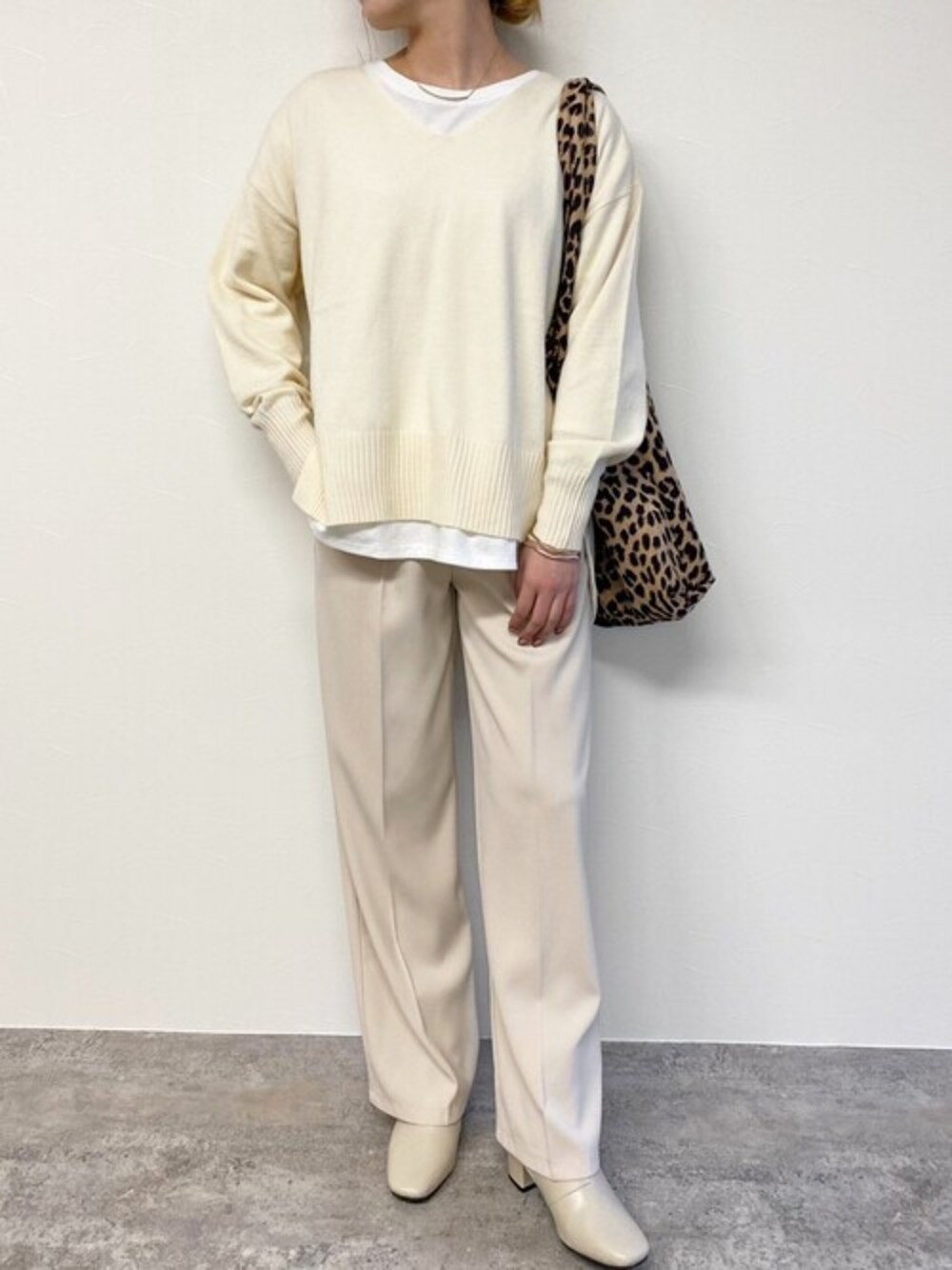 □pick up□ 今の季節ならカットソーやタートルネックとレイヤードするコーデがおすすめ♡ オールホワイトコーデに柄物のバッグでワンポイント! ~ZOZOWEEK開催中~ こちらの商品も只今お買い求めやすい価格となっております! 気になるあの商品もお安くお買い求めいただけるチャンス❣️ この機会をお見逃しなく!! ‘‘Vネックべーシックニット‘‘ ¥1,980-タイムセール中