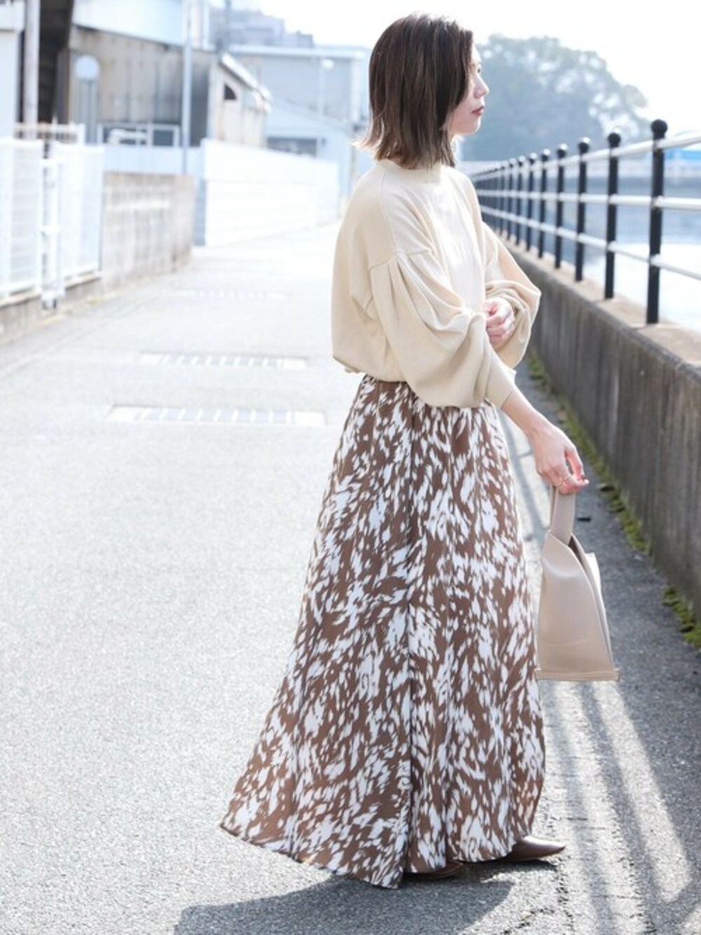recastaff(reca)のニット/セーター「ボリューム袖クルーネックニット」を使ったコーディネート