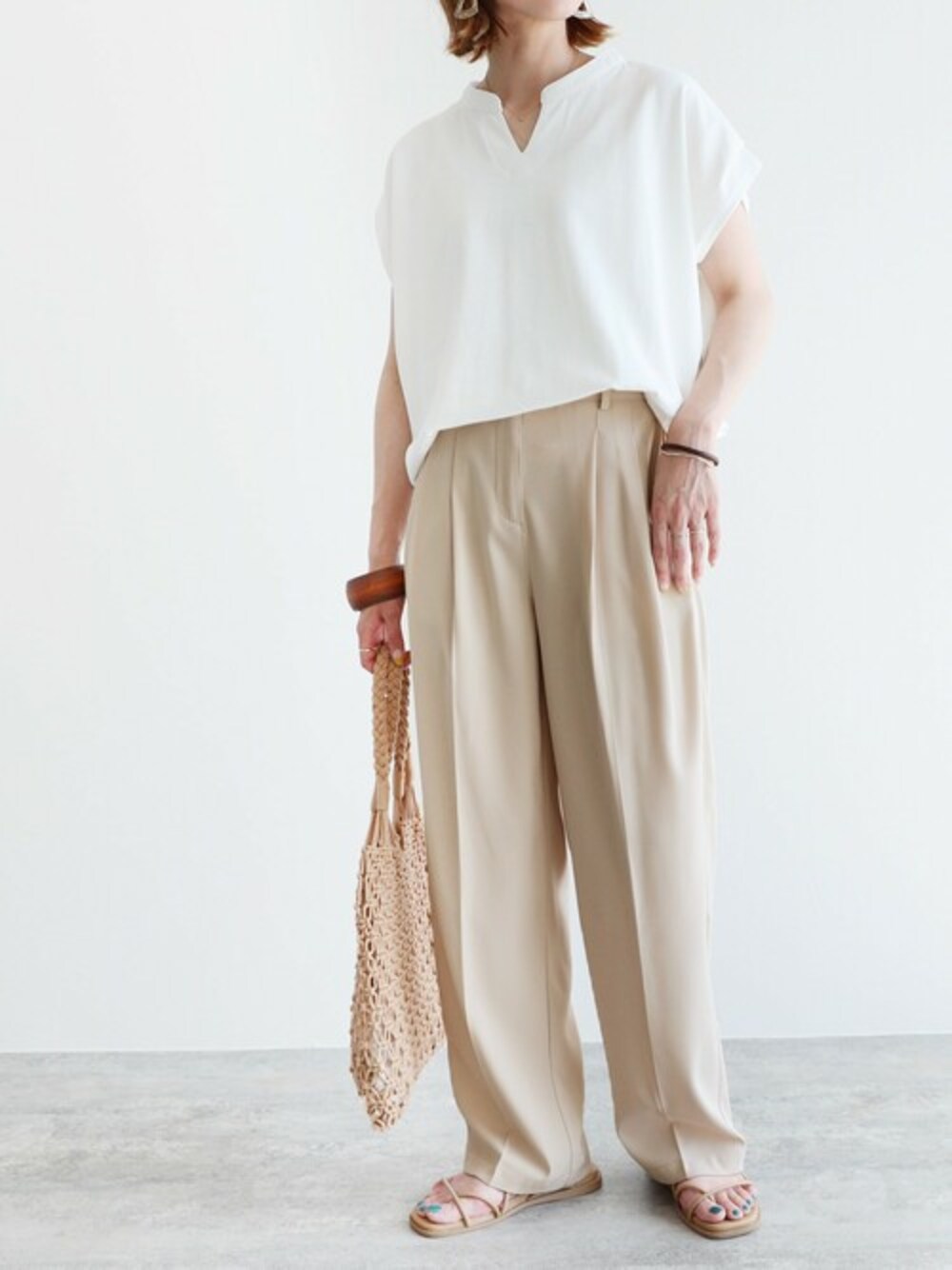 recastaff(reca)のスラックス「ダブルタックセンタープレススラックスパンツ」を使ったコーディネート