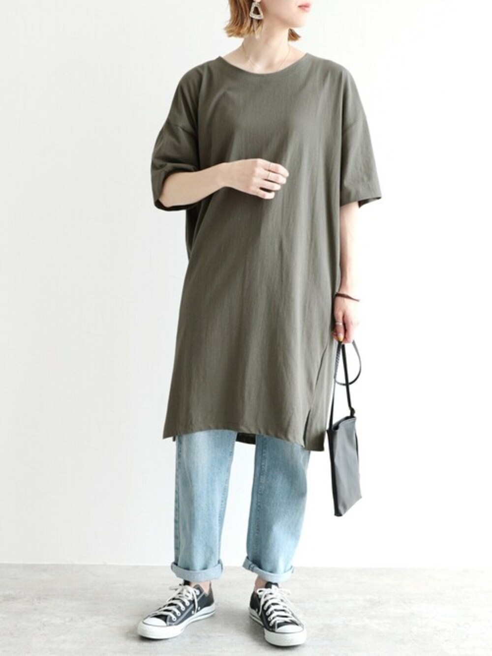 recastaff(reca)のチュニック「ビッグシルエットTシャツワンピース」を使ったコーディネート