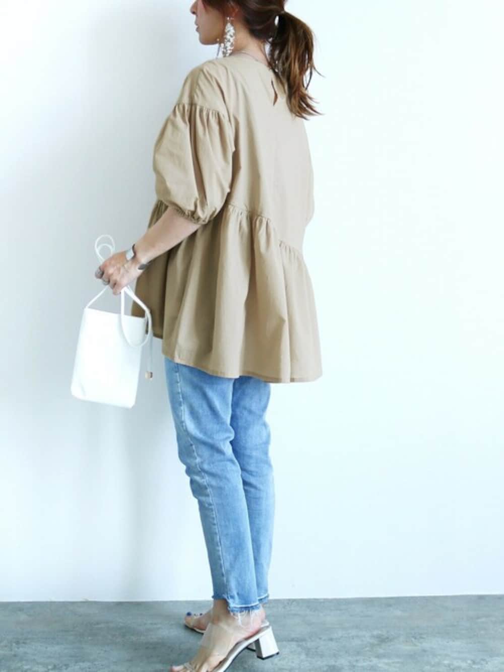 recastaff(reca)のシャツ/ブラウス「ボリューム袖フレアブラウス」を使ったコーディネート