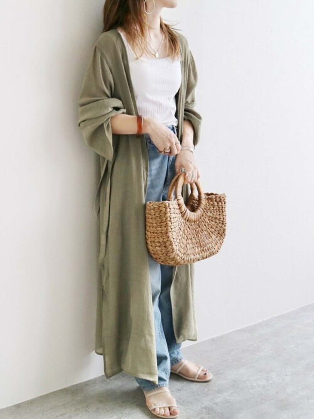 recastaff(reca)のカーディガン/ボレロ「スラブガーゼロングカーディガン」を使ったコーディネート