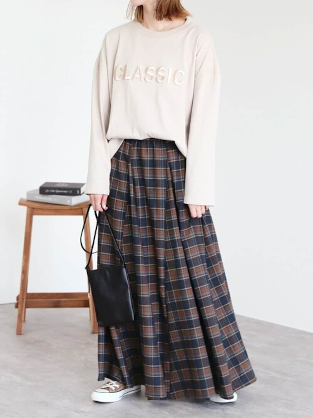 recastaff(reca)のスカート「チェックロングスカート」を使ったコーディネート